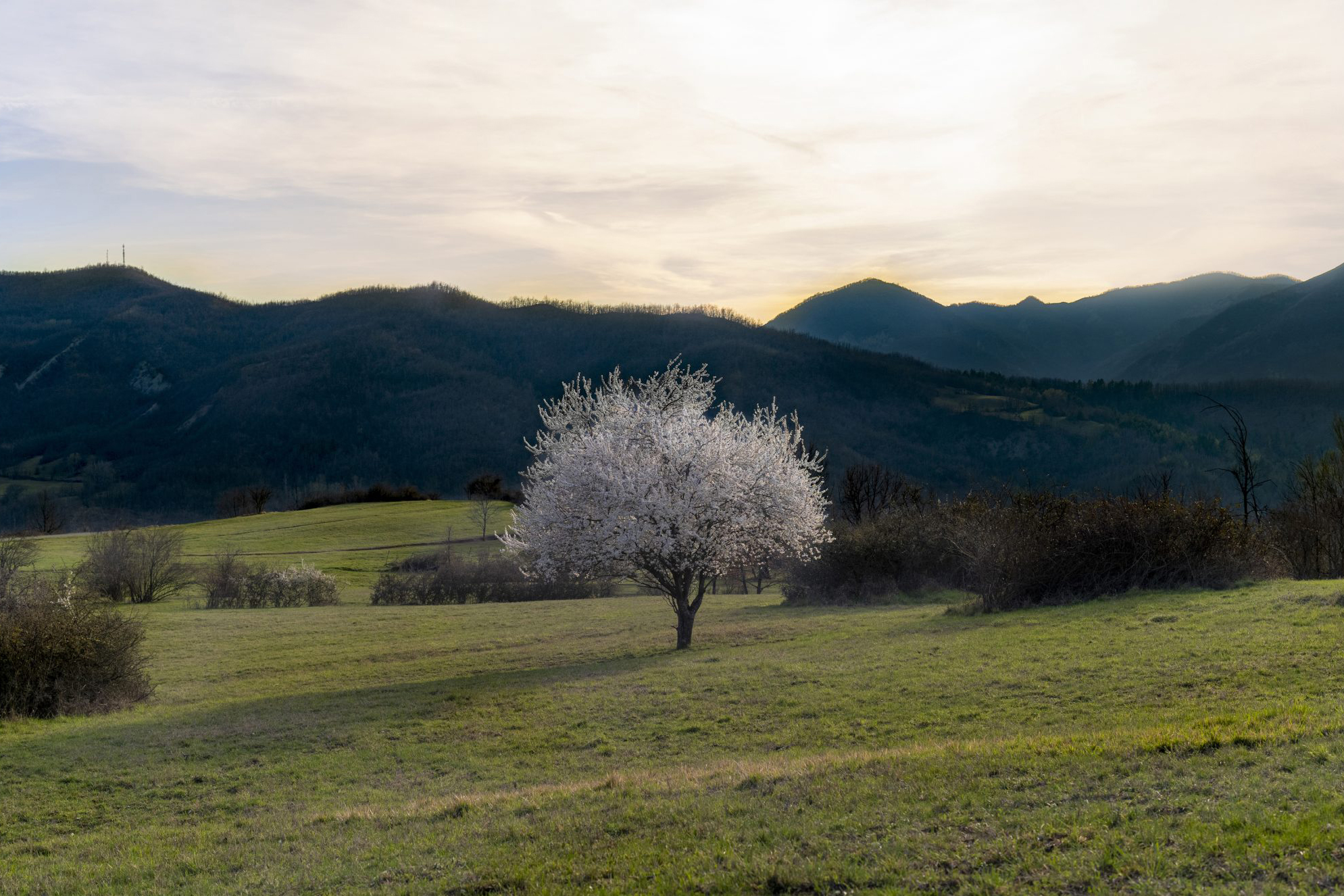 Ho passato l’inverno in attesa di un finale degno della storia, un posto che veicolasse quella pace interiore che volevo trasmettere, ma che suggerisse anche che, al di là del mondo esterno, la vera pace risiede dentro ogni essere umano. Ricordo di essermi svegliato una mattina di marzo con in mente un albero di ciliegio solitario in fiore. Ho mandato un messaggio a una delle mamme che mi stavano aiutando chiedendole dove avessi potuto trovare un simile albero nella valle. Dopo 5 minuti mi arrivò una foto: finalmente avevo trovato dove filmare la conclusione del “Il posto più bello”.